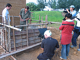 Using local labor, we built a section of wall in front of the cameras to demonstrate how the technique might have been used 2000 years ago, and how it has been updated for contemporary construction. We staged the construction in a disused brick yard on the outskirts of Beijing, where the soil consisted of a promising blend of clay and sand. The presence of a large amount of silt resulted in a small amount of superficial cracking on the surface of the wall as it dried out, but the soil compacted well and the results were satisfying.